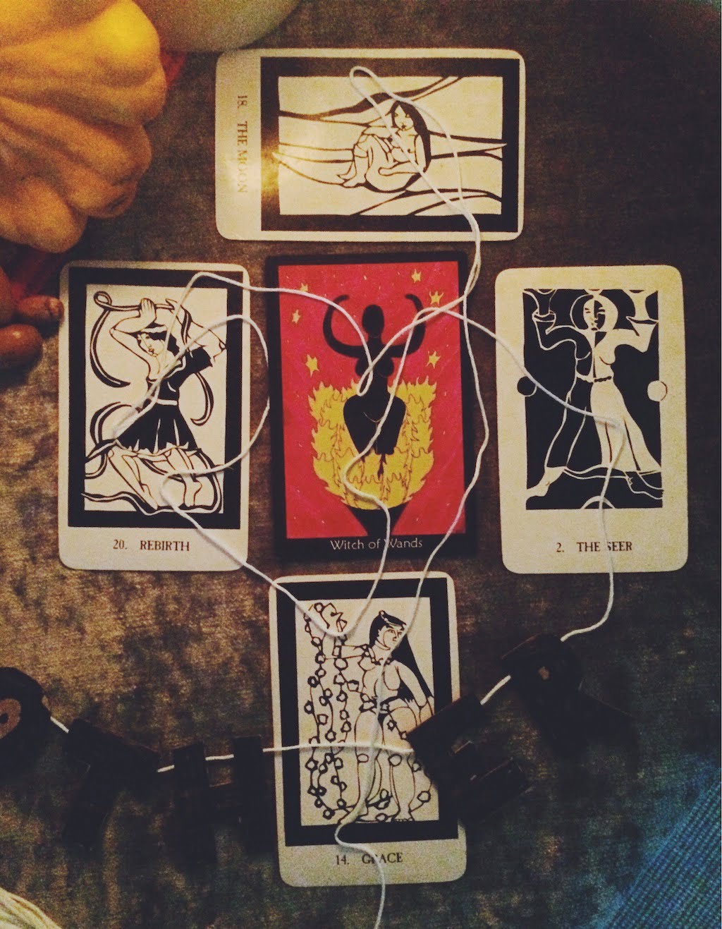 I choose the Witch of Wands. A sorceress, standing in her power, in her flames. So what if she hasn’t learned to tame it yet. I’m ready to try.