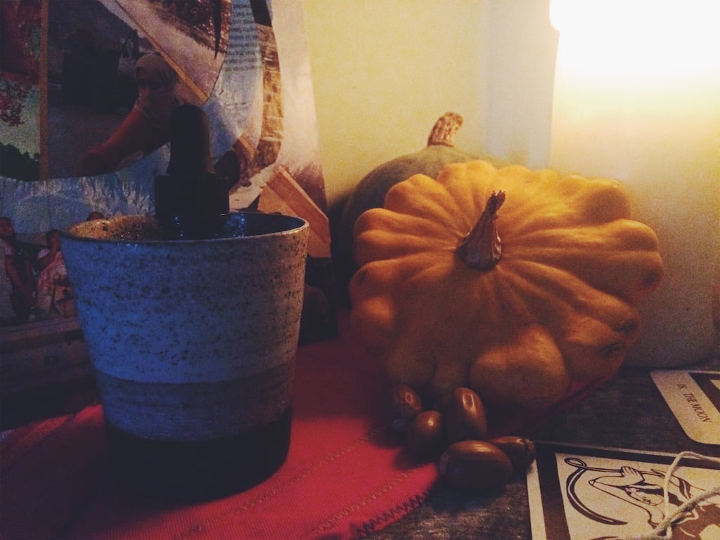 Burning Mugwort, drinking it too. Thea’s Tarot. The Crone. Motherwort and milky oats.